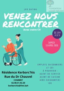 Job Dating à la Résidence de Kerborc’his 16.04.26 Job Dating samedi prochain à la Résidence de Kerborc’his : venez nombreux !